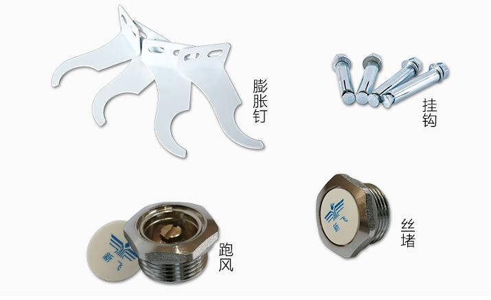 3、脹管和掛件:暖氣安裝要求安全穩(wěn)固,將脹管和掛件掛在墻上,就要求脹管和掛件具有很強(qiáng)的抗壓、抗拉性能保證采暖散熱器不會(huì)移動(dòng)。